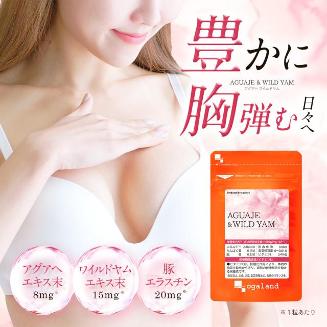 【ポッキリ!!】AGUAJE & WILD YAM (約1ヶ月分) アグアヘ サプリ ライン アップ 美容 女性 胸 弾む ハリのある毎日 栄養 ザクロ プラセンタ 大豆イソフラボン 亜麻仁油 ビタミンE レシチン マカ末 ワイルド ヤムエキス末 健康 タンパク質 オーガランド ポイント消化 32015