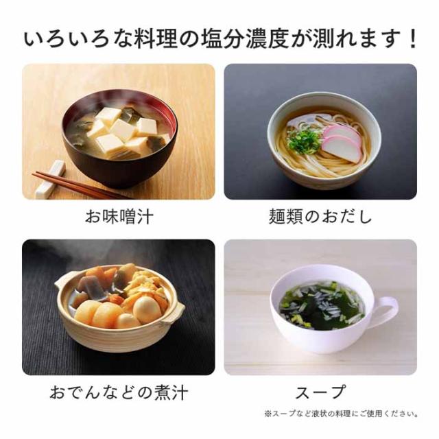 味噌汁・お吸い物・スープなどの汁物の塩分濃度が簡単にはかれます。