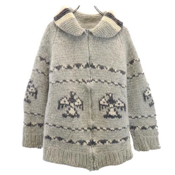 オールド 90s 総柄 カウチンジャケット グレー系 OLD メンズ