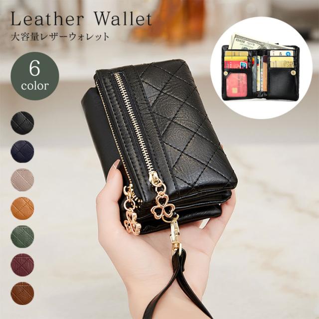 【tiffty】 財布 レディース 二つ折り 大容量 キルティング レザー カード入れ 多い カード たくさん入る ポーチ 小物入れ かわいい お洒落 大人 機能性 コンパクト 小銭入れ サイフ ストラップ付き ミニポーチ 女の子 軽い 30代 40代 50代 送料無料