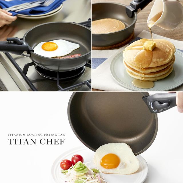 チタンシェフシリーズの脱着ハンドル式フライパン