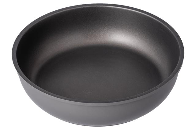 一般的な軽いフライパンは底の厚さが2mm以下ですが、チタンシェフシリーズの厚さは3.5mmです。底厚だと重くなりますが、ぐらつかず調理の安定性が向上します。また、肉厚なので、熱を十分に蓄え、均等に分散されるので美味しく調理できます。