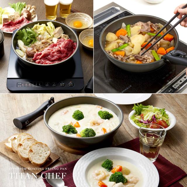 チタンシェフシリーズの脱着ハンドル式フライパン