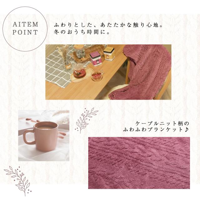 ブランケット ひざ掛け 膝掛け 肌触り 暖かい あたたかい 冷え対策 カジュアル ふわふわ もこもこ 北欧 かわいい おしゃれ 男女 レディース アウトドア ケーブルニット柄 毛布 防寒 職場 ご自宅 キャンプ 防災 介護 (送料無料)