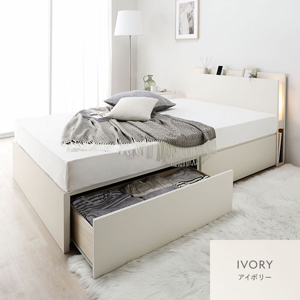セミシングルベッド 白 ホワイト 〔組立設置サービス付〕 2杯 収納ベッド アイボリー 乳白色 日本製 国産 薄型ポケットコイルマットレス付 照明付 コンセント付 引出し付 ライト照明は手元で操作でき就寝前の読書に最適。 コンセント付きで時計やフォトフレームの電源、携帯の充電に最適。 一人暮らし、狭いお部屋に最適。省スペースでお部屋の空間を有効活用しましょう。搬入経路が心配なお部屋にもお勧め。 整理 収納 と快適さを兼ね備えた引き出し付きベッド 日本製 国産 のフレームとライト 照明 、組立設置サービス付き セミシングルサイズでホワイトカラー 薄型ポケットコイルマットレス、ライト 照明 とコンセントも 便利な引き出しで整理 収納 スペースも充実 快適な眠りとスタイリッシュなデザインをお求めの方におすすめ