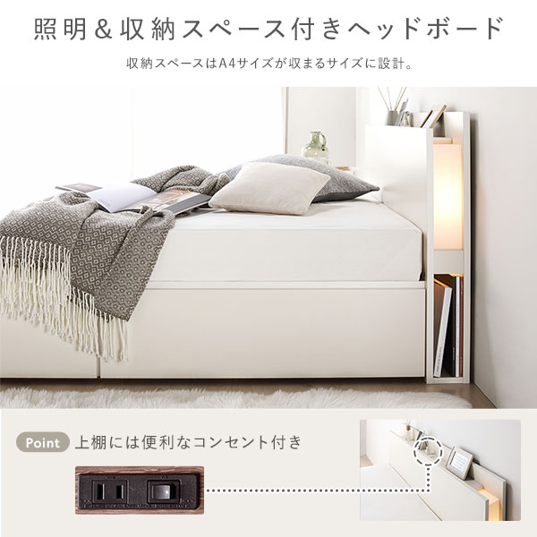 セミシングルベッド 白 ホワイト 〔組立設置サービス付〕 2杯 収納ベッド アイボリー 乳白色 日本製 国産 薄型ポケットコイルマットレス付 照明付 コンセント付 引出し付 送料無料