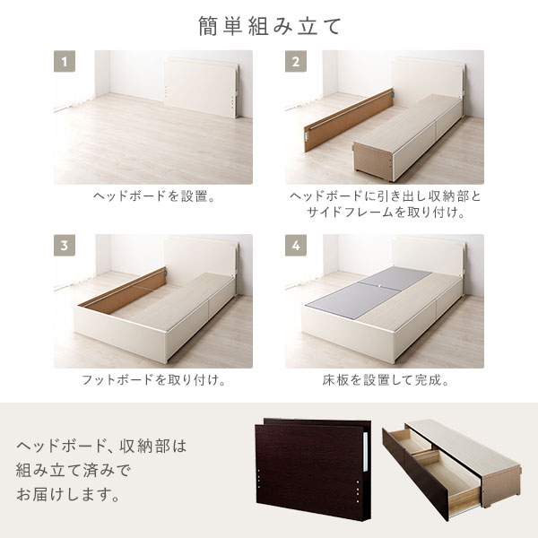 ヘッドボード、収納部は組み立て済みでお届けします。