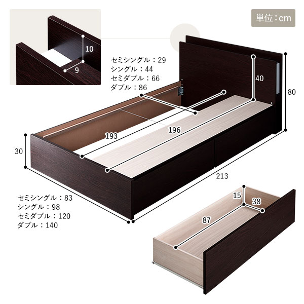 日本製 引き出し収納付きベッド 宮付 ライト付 ベッドフレーム収納ベット ベッドフレーム ベッド ベット すのこベット 宮付 宮棚付 棚付 収納付 コンセント付 ヘッドボード付