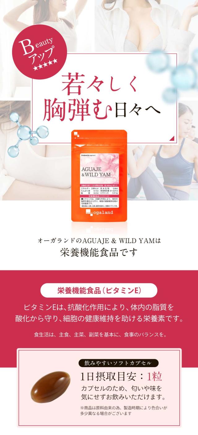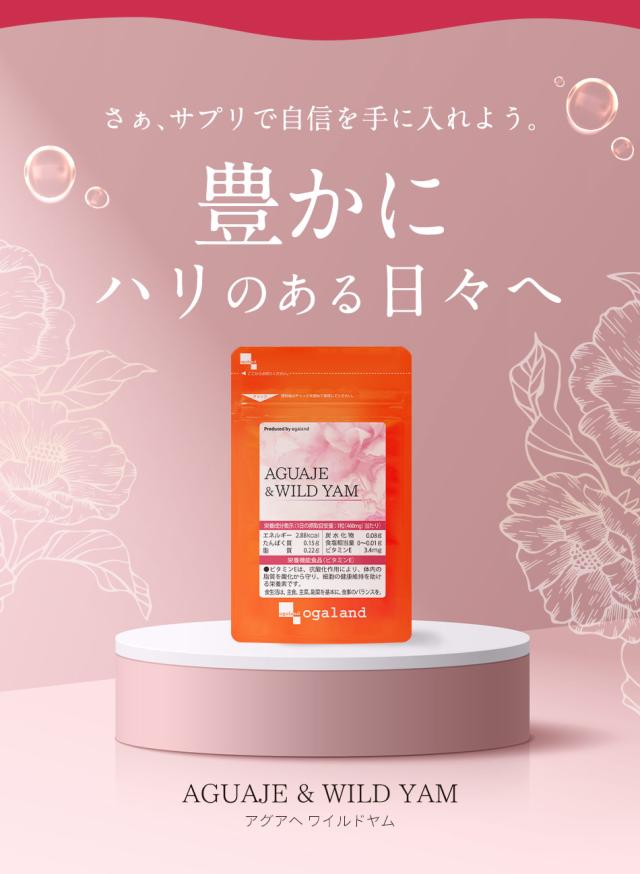 【セール】 AGUAJE & WILD YAM (約3ヶ月分) アグアヘ サプリ バスト 美容 女性 らしく 胸 弾む ハリのある毎日 張り ライン 栄養 ザクロ プラセンタ 大豆イソフラボン 亜麻仁油 レシチン マカ末 ビタミンE ワイルド ヤムエキス末 健康 タンパク質 オーガランド 32015