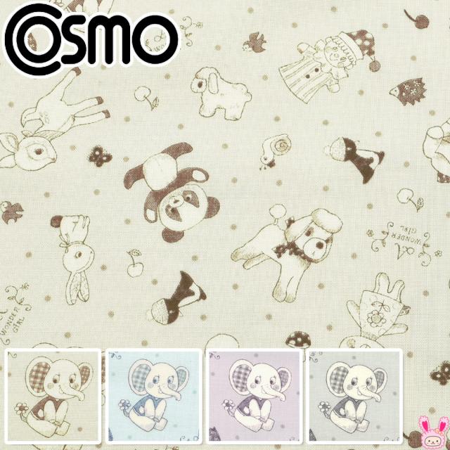 レトロアニマルとドット シーチング生地 CR8889 コスモ(50cm以上10cm単位切り売り)