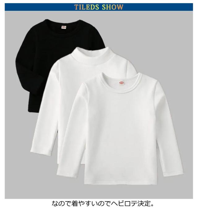 カットソー 白 黒 シンプルハイネックTシャツ キッズ ベビー 子供 子供服 キッズ服 女の子 男の子 裏起毛 秋 秋冬 秋服 秋冬物 長袖 長袖tシャツ ロンt トップス カットソー ティーシャツ 保育園 綿 クルーネック ハイネック 送料無料