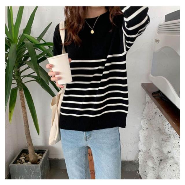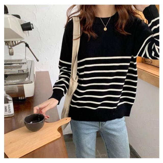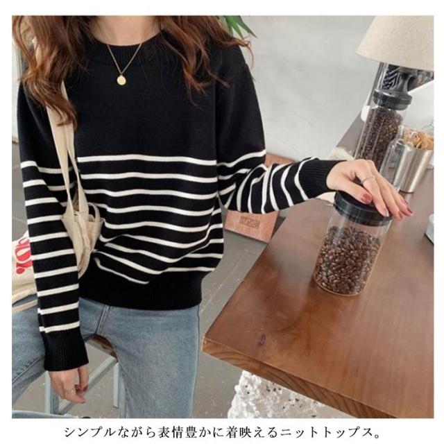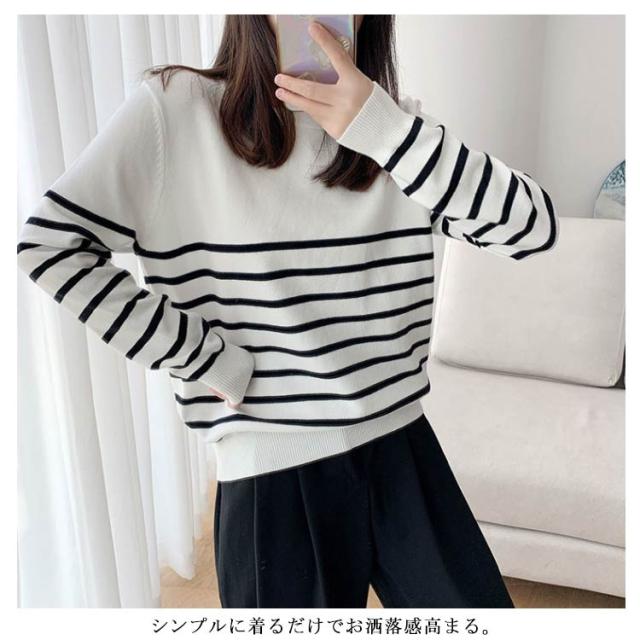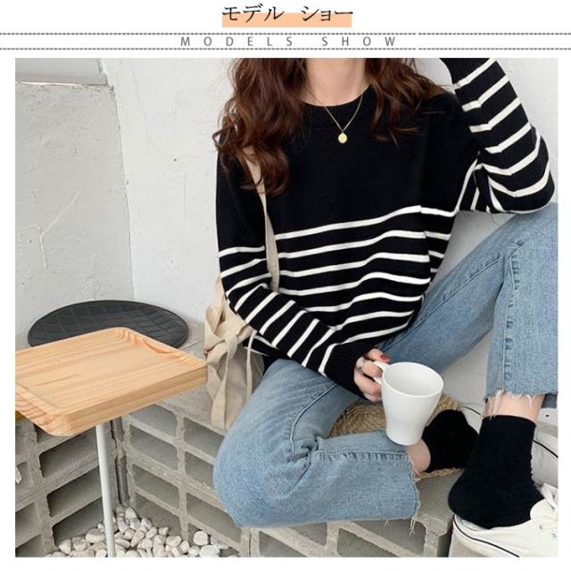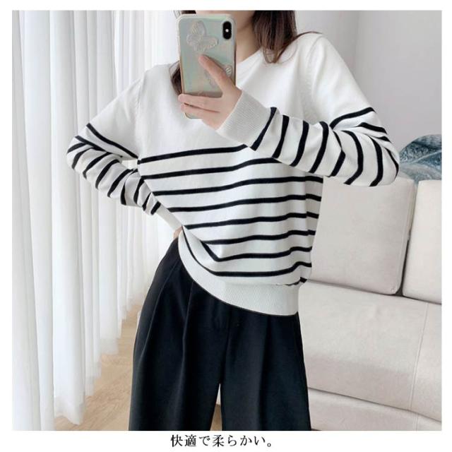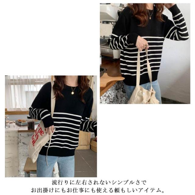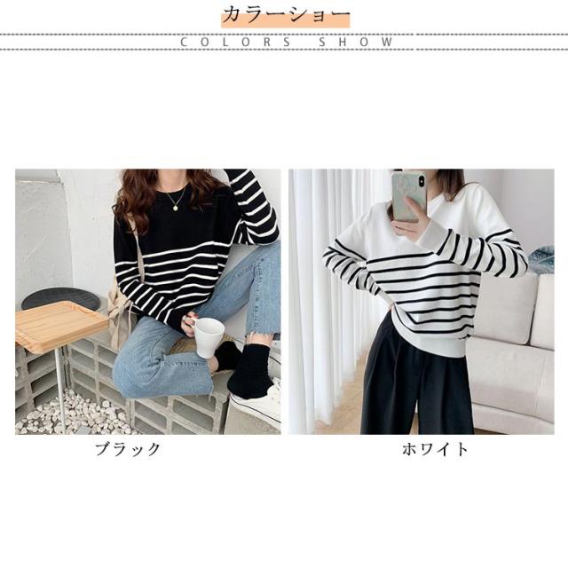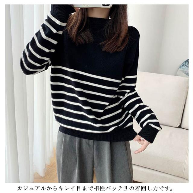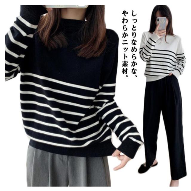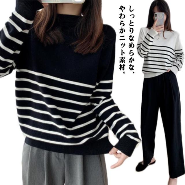 ニット セーター レディース 秋 冬 40代 トップス 長袖 パーカー ストライプ 暖かい ニットウェア おしゃれ 可愛い カットソー 大人 上品 通勤 OL ビジネス シンプル カジュアル 大きいサイズ 50代 30代 2色 秋服 冬服 送料無料