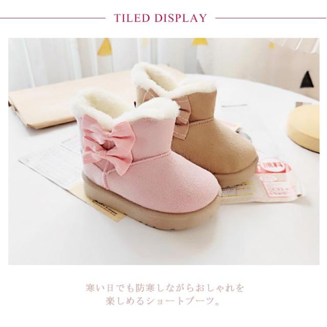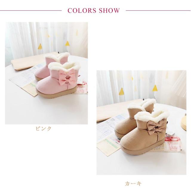 ムートンブーツ キッズ ブーツ 女の子 リボン スノーブーツ 子供 靴 ショートブーツ 厚底 スエード もこもこ 暖かい 防寒 あったか マジックテープ かわいい おしゃれ クリスマス プレゼント 冬
