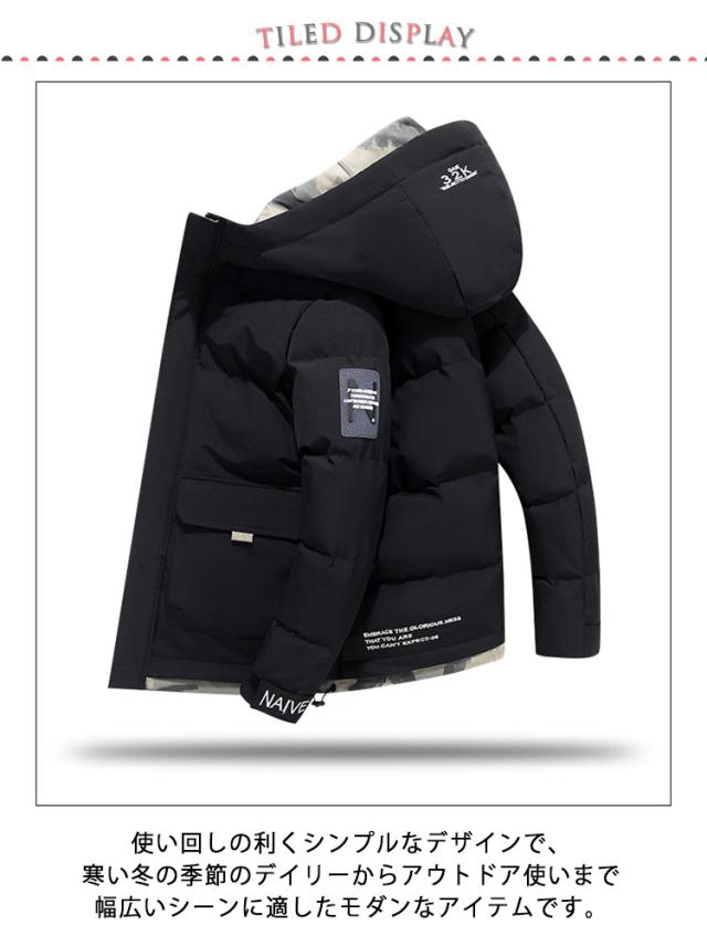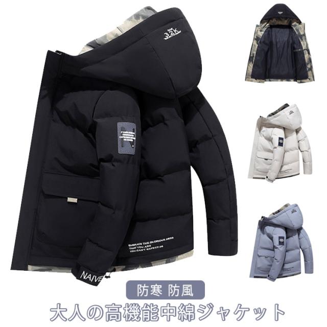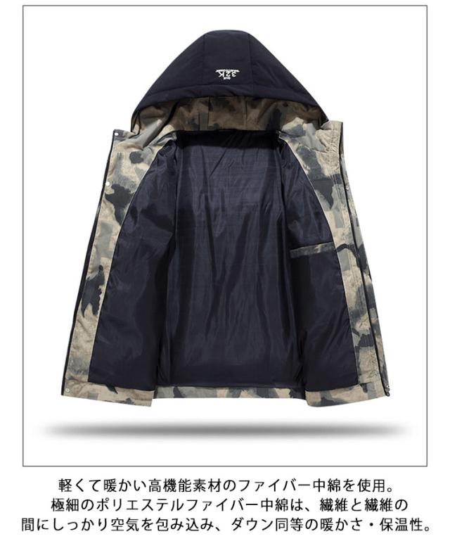 中綿ジャケット メンズ 中綿 ダウンジャケット フード付き 防寒 防風 中綿ブルゾン アウター ダウンコート 秋 冬 防寒着 冬服 冬 暖かい あったか 保温 アウトドア 自転車 通勤 通学 ゆったり 大きいサイズ 送料無料