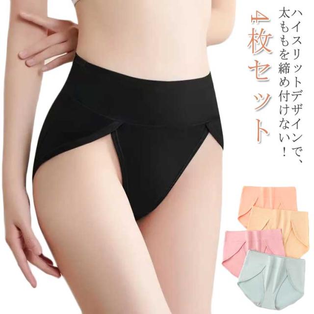 4枚セット ショーツ レディース 女性 婦人 大きいサイズ フルバック ノーマル 綿 下着 パンツ ハイウエスト パンティ ハイスリット 痛くない スタンダード 通気性 快適 無地 単色 シンプル かわいい おしゃれ