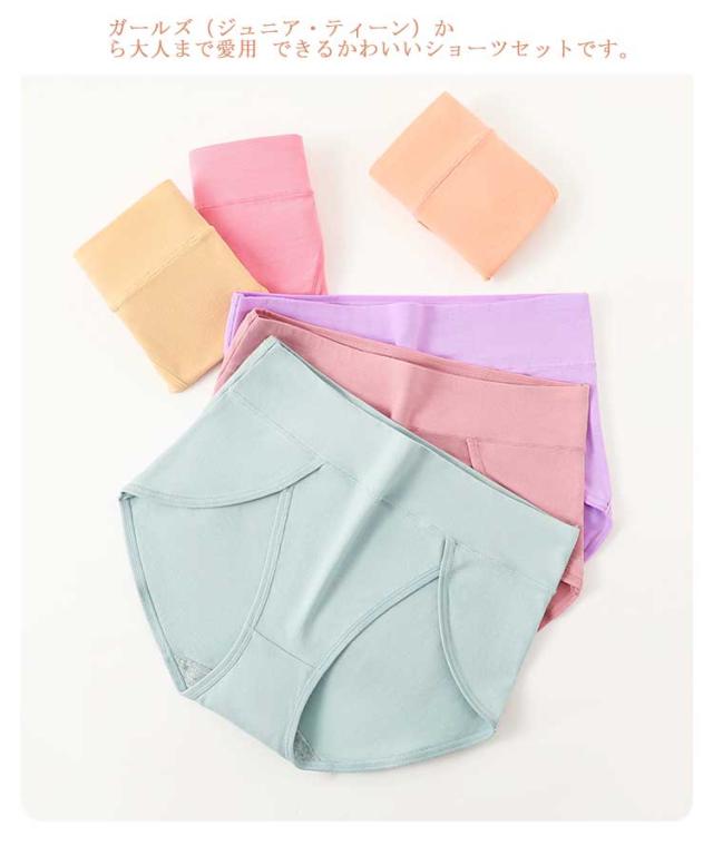 | ハイスリットデザインで、太ももを締め付けない! 伸縮性があり柔らかく触り心地&履き心地も抜群♪ ガールズ(ジュニア・ティーン)から大人まで愛用 できるかわいいショーツセットです。 | |