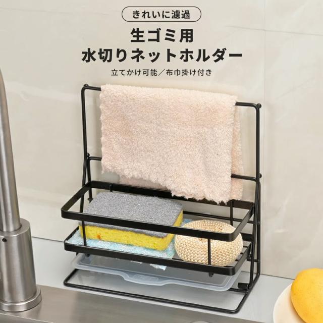 立てかけ可能!ふきんかけスタンドにもなる折りたたみOKな生ごみ用水切りネットホルダー!