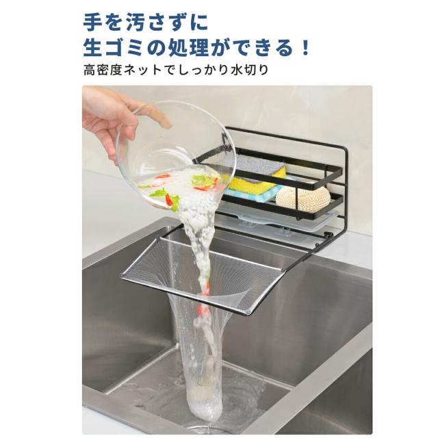 高密度ネットでしっかり水切り。手を汚さずに生ゴミを処理!排水口もずっときれい。