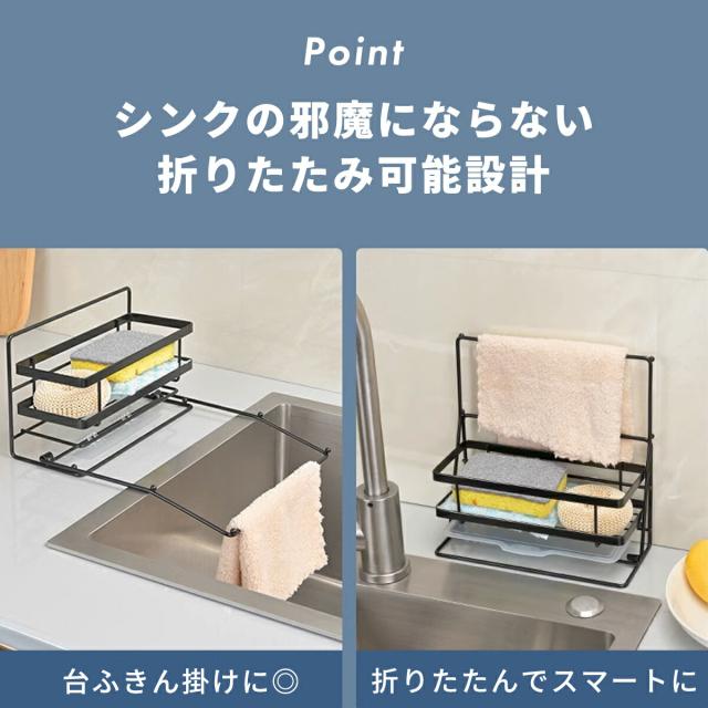 シンクの邪魔にならない折り畳み可能設計。小さくコンパクトになるから場所を取らず、快適。