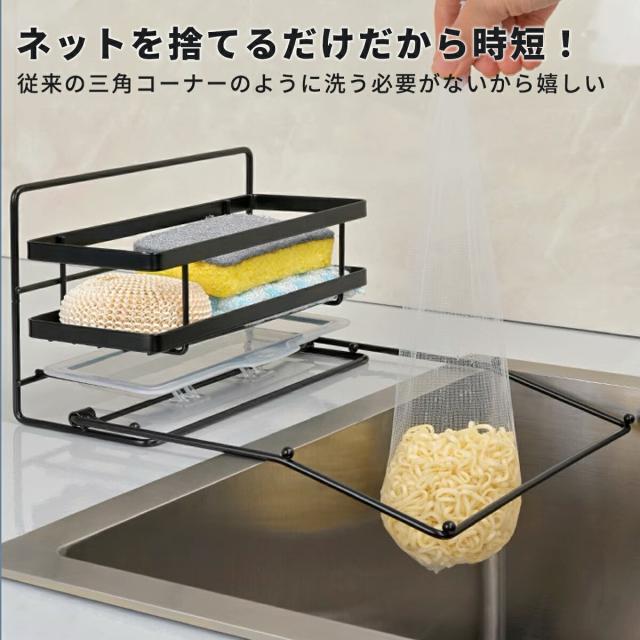 水切りネットホルダー 排水口 三角コーナーいらず 本体 折りたたみ 水切りネット キッチンドレ 生ゴミ ホルダー 浮かせる シンク ゴミ 入れ 三角コーナー 排水 溝 受け ごみ袋ホルダー アイデア 便利