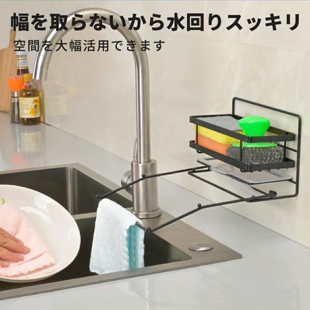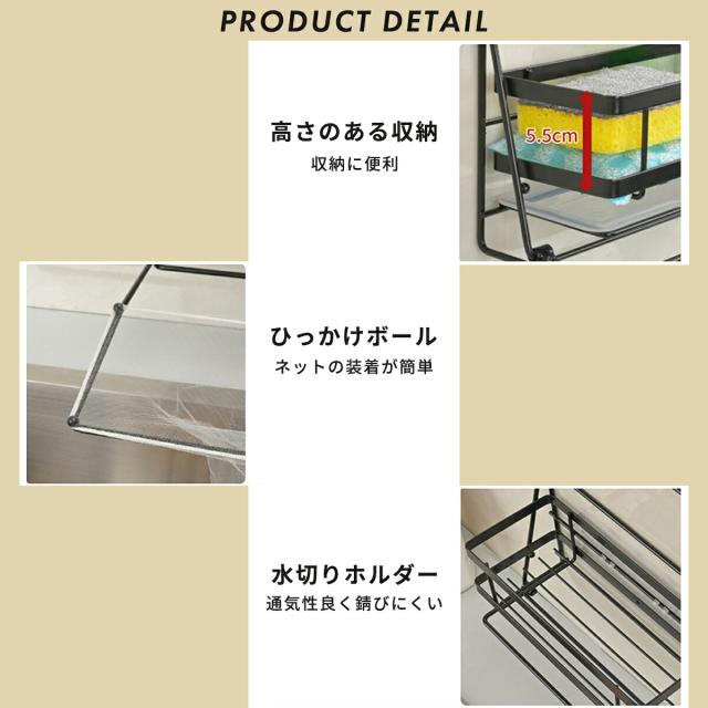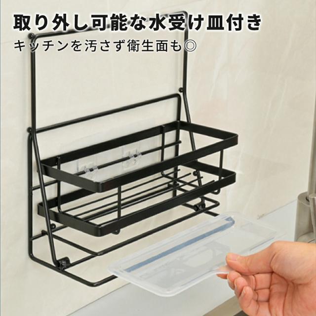 取り外し可能な水受け皿付き!高さがあるから洗剤やスポンジなども収納OK。