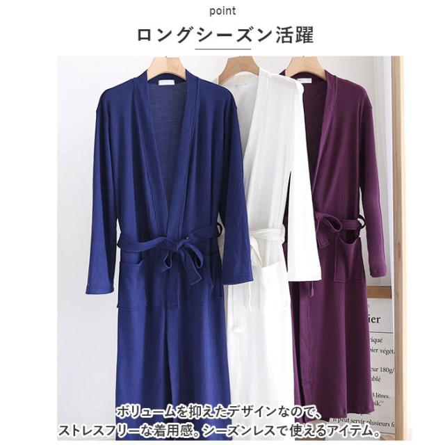 バスローブ ルームウェア 長袖 通販 ガウン ナイトガウン 部屋着 パジャマ 羽織 羽織り 薄手 レディース メンズ ユニセックス 薄い 吸水性 肌に優しい オールシーズン 春 夏 秋 冬