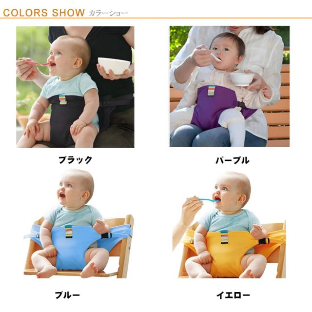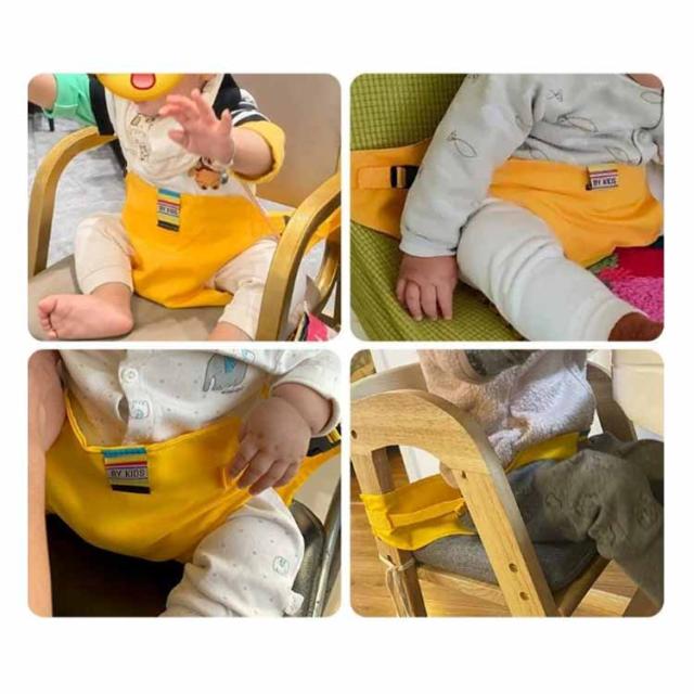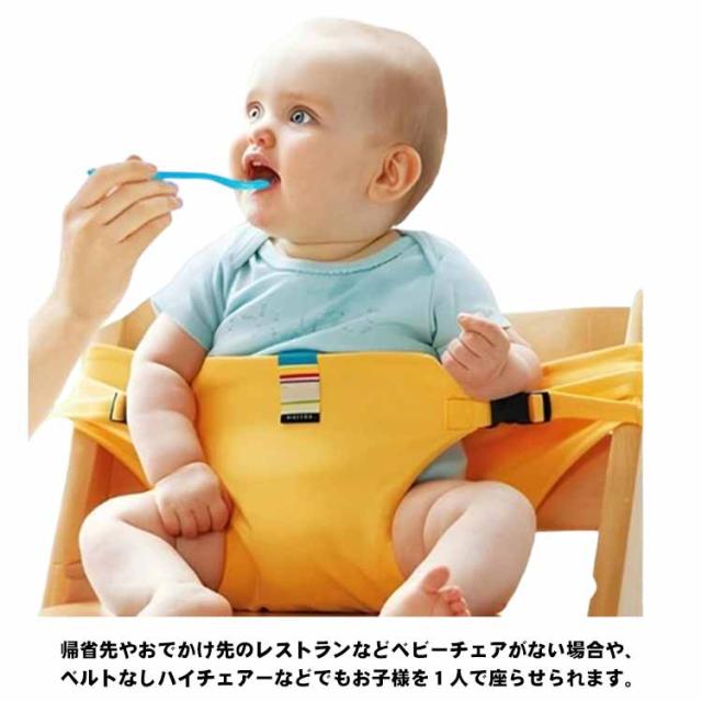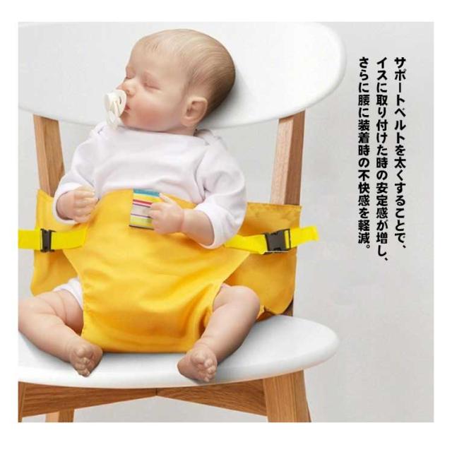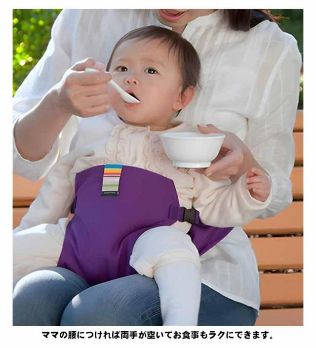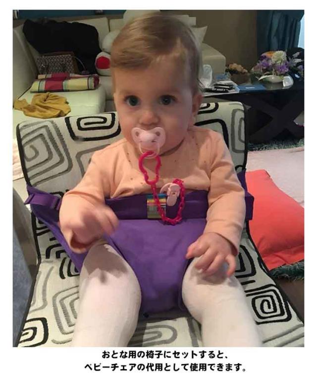 | 赤ちゃん用、お座り補助ベルト サポートベルトを太くすることで、イスに取り付けた時の安定感が増し、さらに腰に装着時の不快感を軽減。 腰につけて、前抱き状態でお子さまが少し動いても、サポートベルトが太くなったのでしっかり支えられます。 おとな用の椅子にセットすると、ベビーチェアの代用として使用できます。 帰省先やおでかけ先のレストランなどベビーチェアがない場合や、ベルトなしハイチェアーなどでもお子様を1人で座らせられます。 ママの腰につければ両手が空いてお食事もラクにできます。 軽くてコンパクトで持ち運びに便利。ママバッグに入れても邪魔になりません。 | |