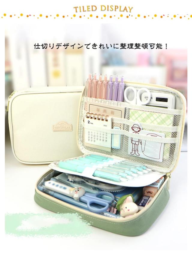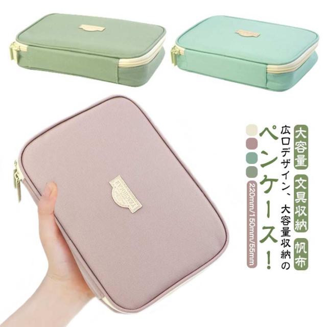 ペンケース 大容量 大人 仕切り 文具 文房具 筆箱 手帳 たくさん入る 定規 付箋 収納 テレワーク 持ち運べる 帆布 キャンバス 高校生 中学生 大学生 小学生 多機能 広口