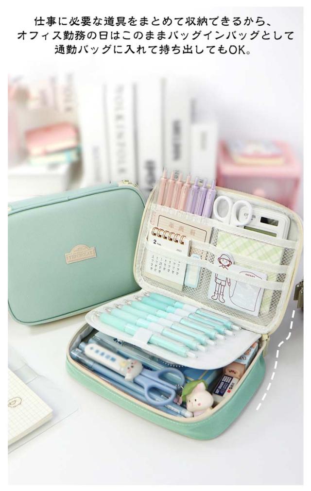 | 広口デザイン、大容量収納のペンケース! ペン、定規、付箋など必要な文具をまとめて収納でき。 仕切りデザインできれいに整理整頓可能! 仕事に必要な道具をまとめて収納できるから、オフィス勤務の日はこのままバッグインバッグとして通勤バッグに入れて持ち出してもOK。 | |