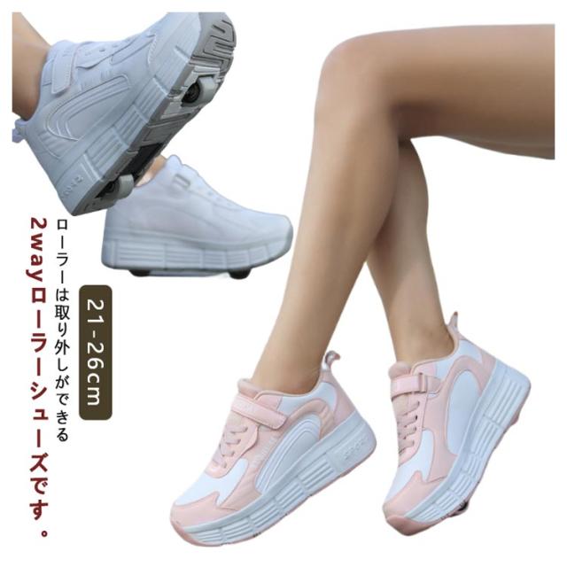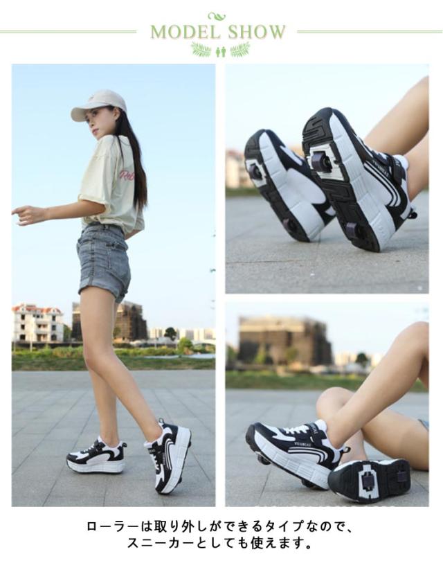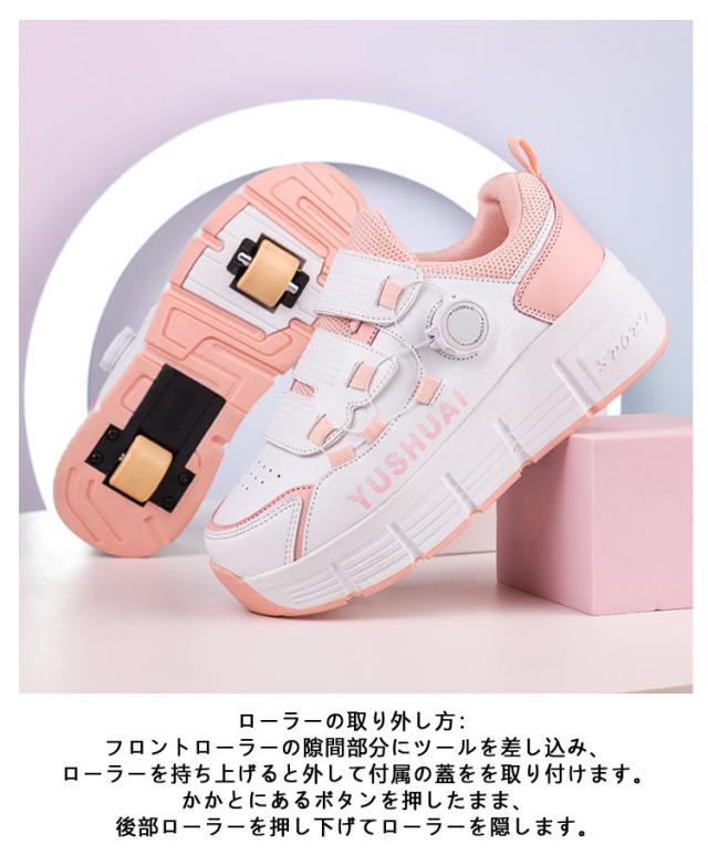 スニーカー ジュニア ローラーシューズ ローラースケート 2輪 キッズ 大人 女の子 2way 通気性 子供 靴 男の子 メッシュ ローラースニーカー 子供用運動靴 スポーツ 男女兼用 ローラーシューズ