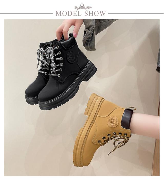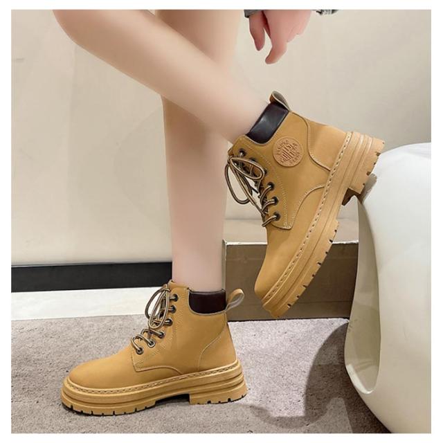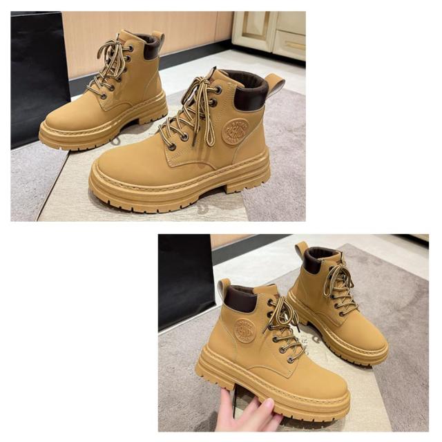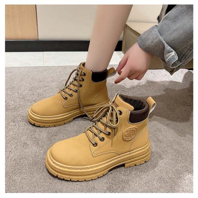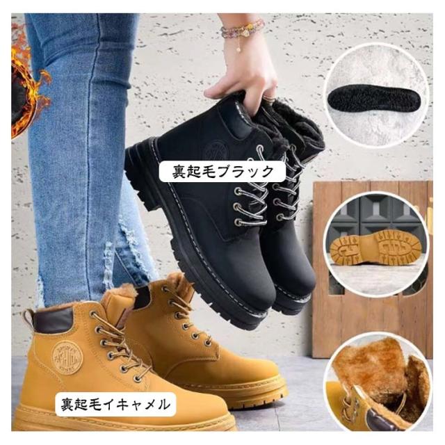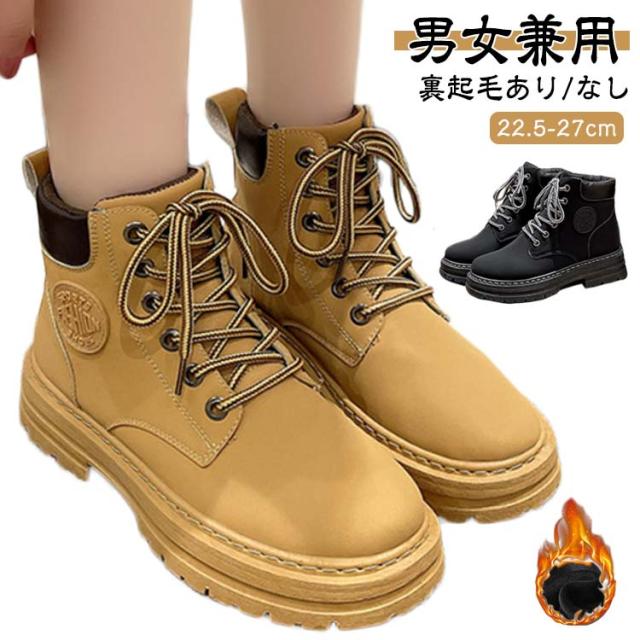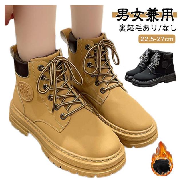 イエローブーツ おしゃれ ショートブーツ 編み上げブーツ ワークブーツ マウンテンブーツ アウトドア ブーツ レースアップ レディース ローヒール 男女兼用 ハイカット 厚底 裏起毛あり 冬靴 雪靴 トレンド マウンテンブーツ カジュアル メンズ