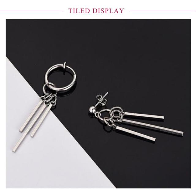 | 3連デザイン、チタン製スティックピアス。【両耳セット】 動くたびに揺れるスティックモチーフはデザイン性が高く目を惹きます。 大きすぎない程よいサイズ感なので、誰でもつけやすくコーデのアクセントにおすすめです。 シングルピアスとして片耳だけにつけたり、両耳につけたりその日の気分で使い分けできます。 素材はチタンで変色や錆びに強く、アレルギー反応が出にくい点が特徴です。また、硬い金属ですのでお手入れも簡単で、一年中安心してご使用していただけるアクセサリー素材です。 カップルやお友達同士でシェアすると更にお得です。 シンプルなフープピアスはメンズにもレディースにもおススメです。 | |
