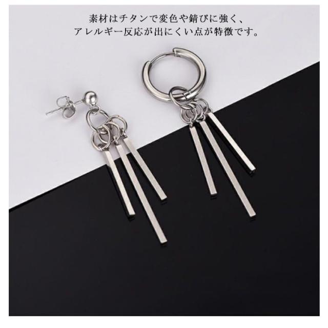ピアス メンズ リング 3連 スティックピアス リングピアス 片耳 両耳 フープピアス 揺れるピアス ロングピアス チタン 金属アレルギー メンズピアス レディース シルバー チャーム かっこいい シンプル 普段使い 小さめ おしゃれ 【送料無料】