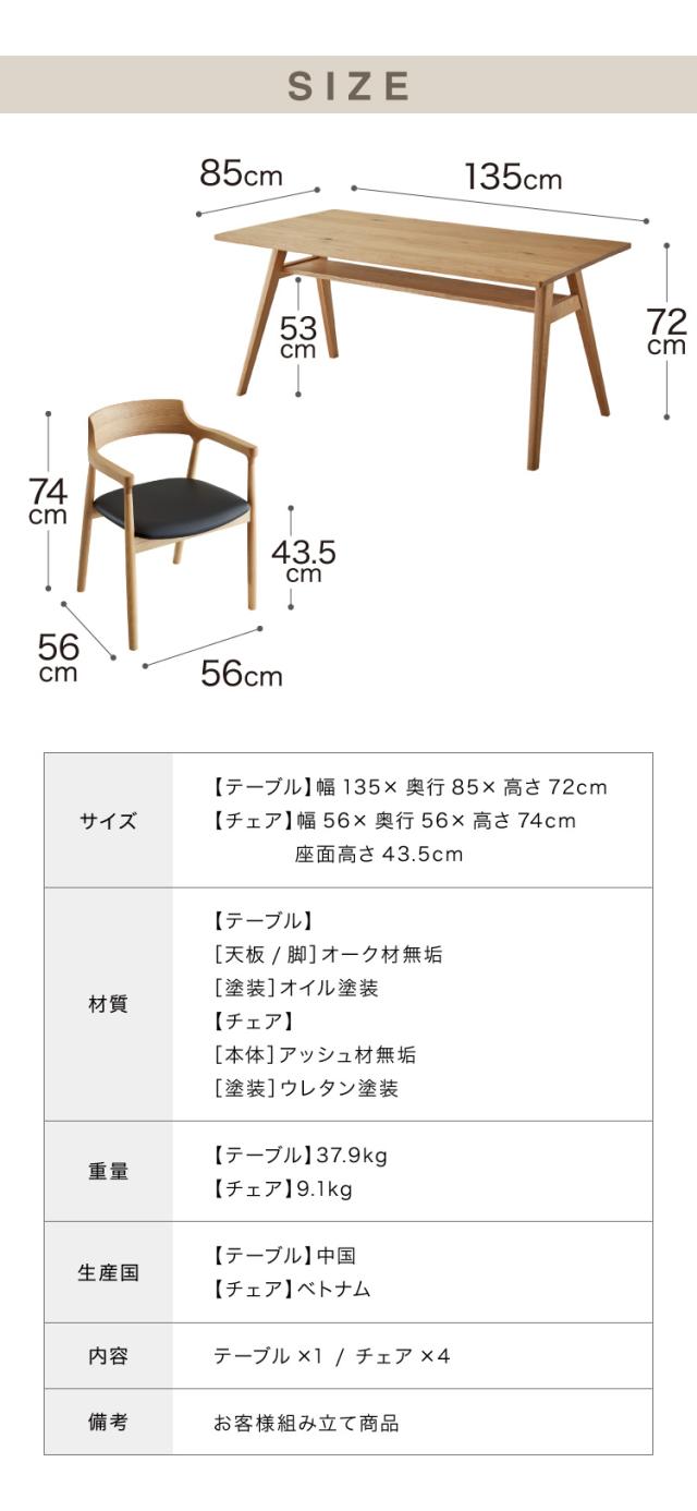 5点セット オーク材テーブル 幅135