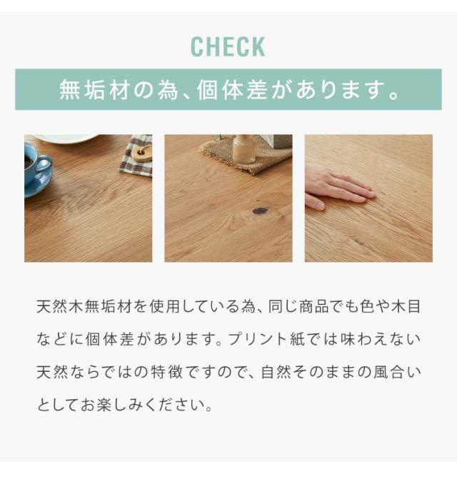 テーブルはぬくもりのある天然木オーク材を使用。天板下にはあると便利な小棚付き。