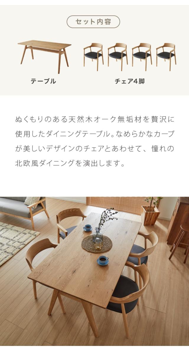 ダイニングセット ダイニング5点セット 4人掛け 幅150 高さ72 オーク無垢材 天然木 棚付き ダイニングチェア 天然木 椅子 ナチュラル おしゃれ ウォールナット(代引不可)【送料無料】