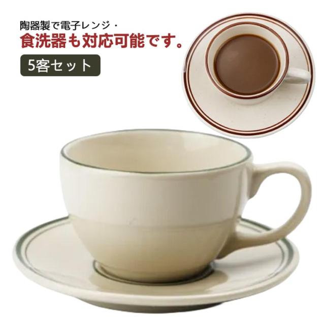 珈琲カップ ライン入り おしゃれ 210ml ソーサー付き 珈琲 5客 セット コーヒーカップ 北欧 おしゃれ カフェ風 コーヒーカップ 受け皿付き 陶器 マグカップ 食器 ティーカップ 紅茶 カップ 碗皿 コーヒーカップ 来客用 業務用 オフィス 会議用