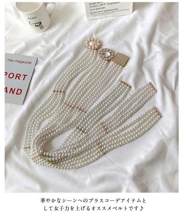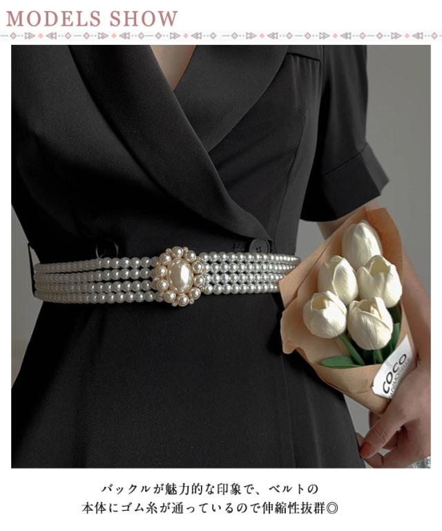 ゴムベルト 結婚式 レディース カジュアル ウエストマーク ゴムベルト 二次会 パーティー 謝恩会 上品 可愛い パールベルト パール ベルト ゴージャス 高級感