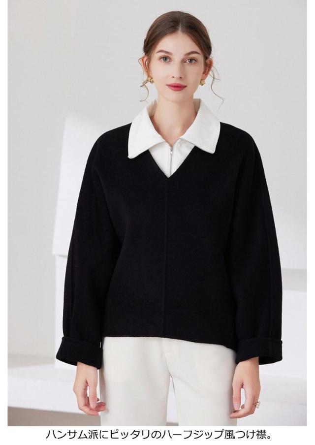 | ジップアップレイヤードつけ襟。 ジップの開閉で襟を折るスタイルとハイネック、どちらの着こなしもお楽しみいただけます♪ ハンサム派にピッタリのハーフジップ風つけ襟。 トレーナーやニットの中に重ねて着るだけで、着膨れせずに旬なスタイルを楽しめます。 長さ調節可能なズレ防止のストラップ付き。 カジュアルシーンからオフィスシーンなど幅広く対応◎ | |