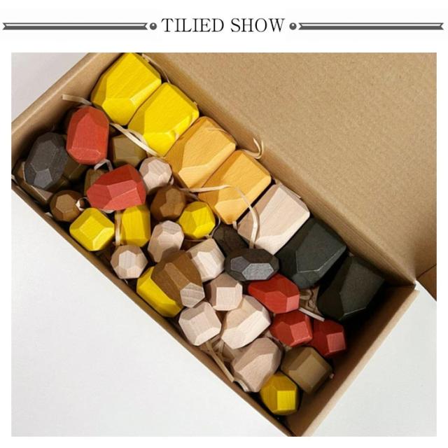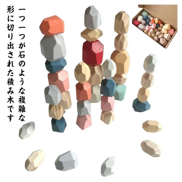 バランス 36ピース スタッキング ウッドブロック 木製 知育玩具 石積み ストーン ブロック 立体 高齢者 ナチュラルカラー マルチカラー 教具 積み木 ストレス解消 ギフト 誕生日 プレゼント