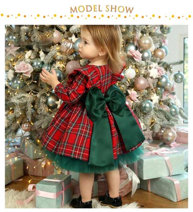 3歳〜4歳 チェック柄 可愛い クリスマス Xmas 女の子 ドレス ガールズ ワンピース リボン クリスマス 子供ドレス キッズ 発表会 結婚式 子供服 お呼ばれ お食事会 春 秋 サンタ スウィート ベルベット プリンセスドレス お祝い 発表会 演出