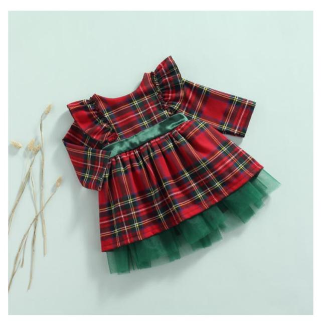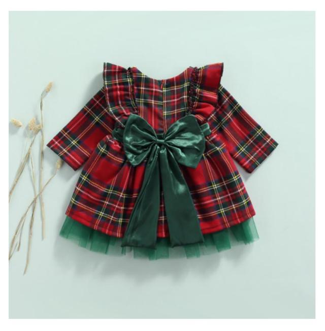 | 80-130cm チェック柄+リボンワンピース クリスマスの雰囲気 | |