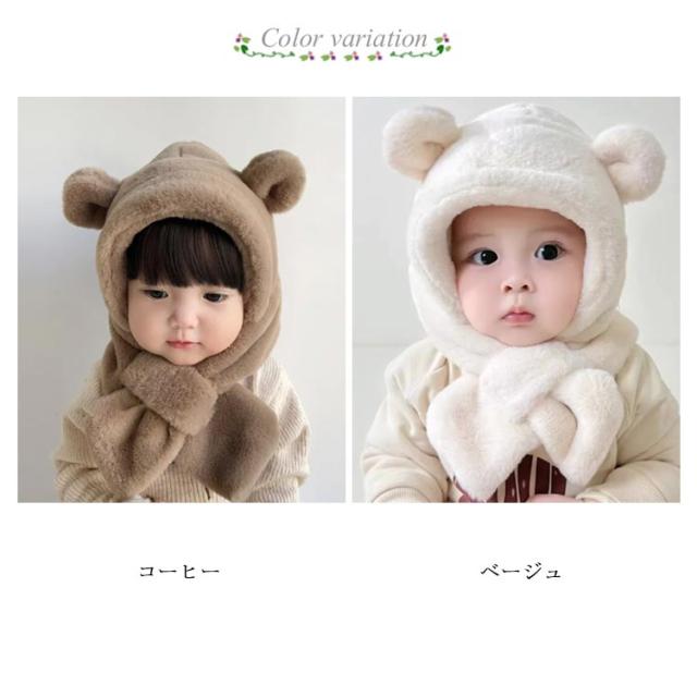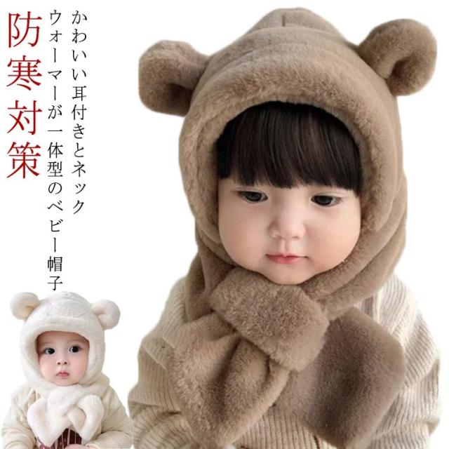 あったか フードマフラー 送料無料 送料無料 フェイクファー マフラー帽子 もこもこ キャップ 耳付き ネックウォーマー ベビー 赤ちゃん 男の子 キッズ 子供 女の子 防寒対策 マフラー 秋 冬 フードウォーマー