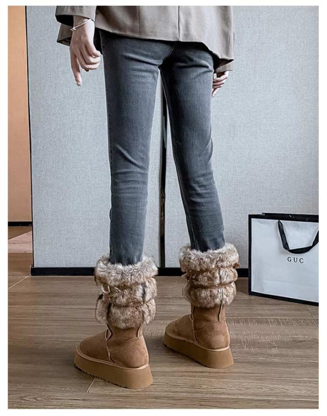 裏起毛 レディース ミドルブーツ ムートンブーツ 防滑 4.5センチヒール スノーシューズ スノーブーツ 歩きやすい ムートンブーツ 防寒 滑らない 送料無料 ボアブーツ 痛くない 大きいサイズ 暖かい もこもこ 厚底 ミドルブーツ 婦人靴 カジュアル おでかけ 旅行