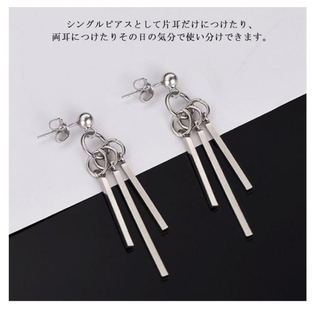 片耳 両耳 リングピアス スティックピアス ピアス メンズ シルバー 3連 ピアス 揺れるピアス レディース チタン フープピアス メンズピアス シンプル ロングピアス チャーム かっこいい 金属アレルギー 普段使い 小さめ おしゃれ