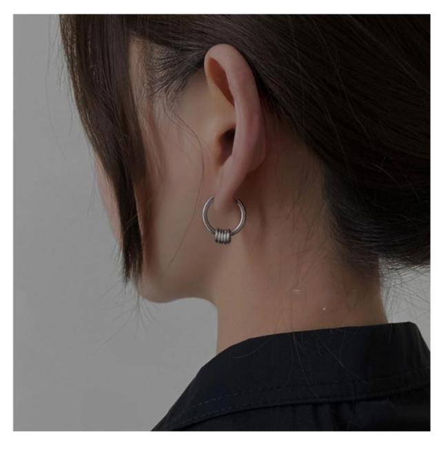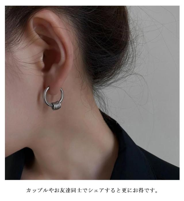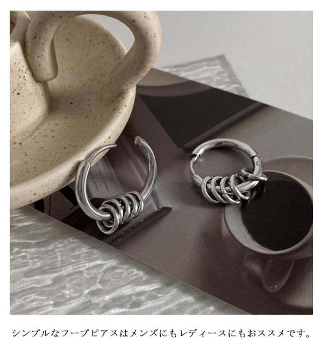 | 個性的な5連リングフープピアス。【両耳セット】 大きすぎない程よいサイズ感なので、誰でもつけやすくコーデのアクセントにおすすめです。 シングルピアスとして片耳だけにつけたり、両耳につけたりその日の気分で使い分けできます。 カップルやお友達同士でシェアすると更にお得です。 シンプルなフープピアスはメンズにもレディースにもおススメです。 | |