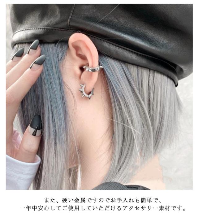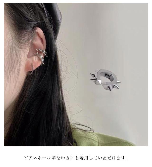 イヤーカフ リングピアス メンズ 韓国風 スパイク フープピアス 両耳 金属アレルギー対応 レディース ピアス イヤリング チタン パンク風 スパイクピアス シンプル 個性的 スパイクモチーフ ストリート おしゃれ かっこいい ピアス ユニセックス