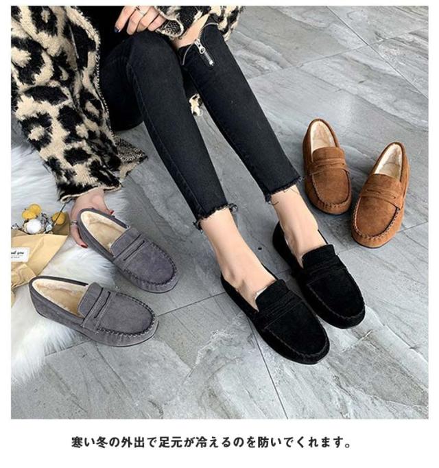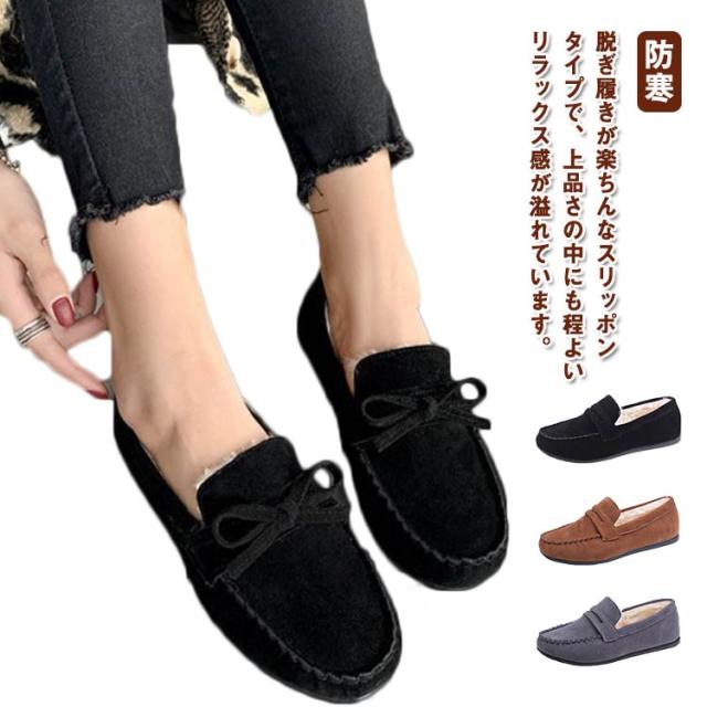 裏起毛 レディース ローファー スリッポン 冬 暖かい パンプス ボア フラットシューズ 秋 レディース 防寒 靴 あったか もこもこ モカシン シューズ 大きいサイズ