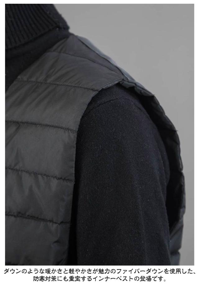 | メインのアウターとしてや、スーツやジャケット、アウターの中にも着込める中綿ダウンベスト ダウンのような暖かさと軽やかさが魅力のファイバーダウンを使用した、防寒対策にも重宝するインナーベストの登場です。 中綿はふんわり柔らかな超極細ファイバー。 ジャケットの中に着ても衿から胸元がスッキリと見えるVネック。 そして脱いでも体型がスッキリと映えるV型キルティングに、 ウエストラインは膨らまないよう、縫製を工夫しました。 膨らまないことで、体との隙間を極力作らず、保温力を高めてくれます。 | |