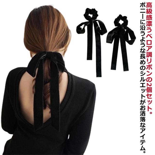 リボン 女性 ヘアアクセサリー ベロア 2個セット 髪飾り ヘッドバンド シュシュ リボン 大人 小顔 レディース リボン ベロア ヘアゴム ロングリボン 髪留め ゴム ヘアアクセサリー ビックリボン ベルベット 上品 エレガント きれいめ